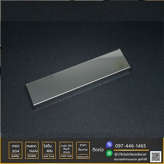 จำหน่ายฉากสแตนเลสสีเงิน STAINLESS ANGLE MIRROR ฉากสแตนเลสคุณภาพสูง ใช้สแตนเลสเกรด 304 สีชัดเงา สร้างมูลค่าให้กับสินค้า ด้วยคุณสมบัติของสแตนเลสเกรด 304 ทำให้ไม่เกิดสนิม สามารถใช้งานพับวีคัดได้มุมที่สวยงาม